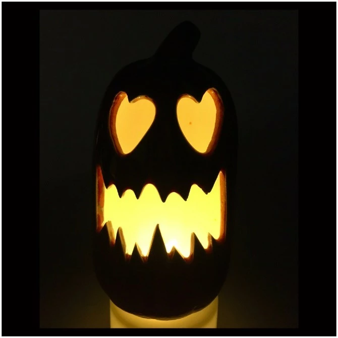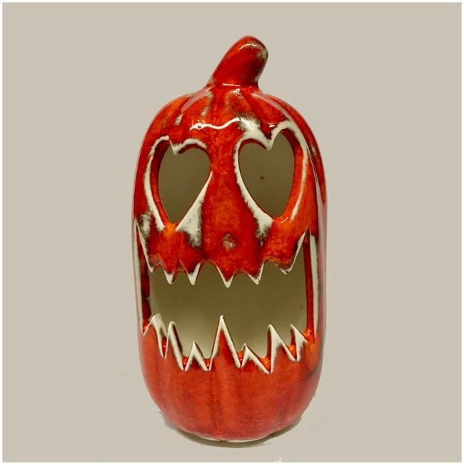 These little ceramic pumpkins are ecceptional quality and as they have a small hole in the base, they can be placed on top of an LED tea light so their ghoulish faces light up!