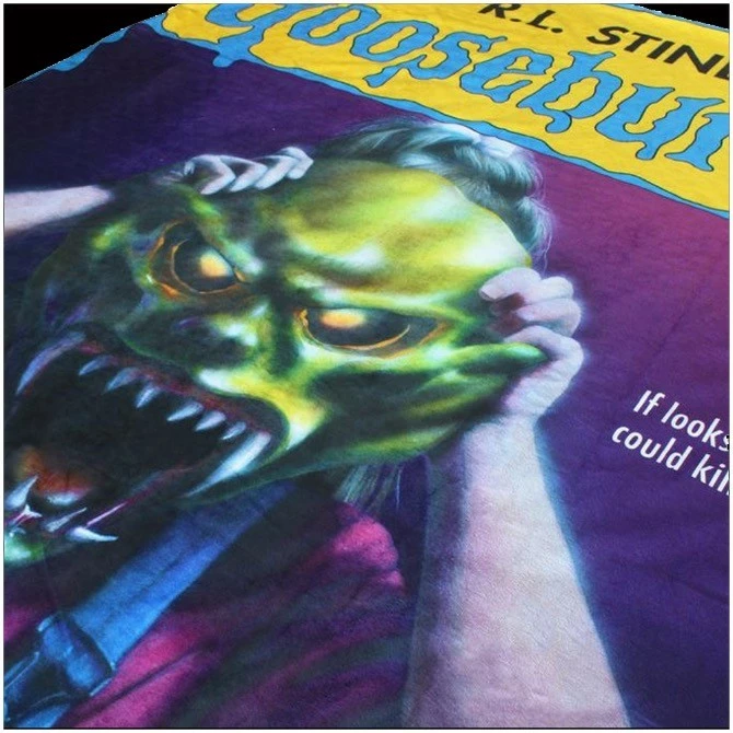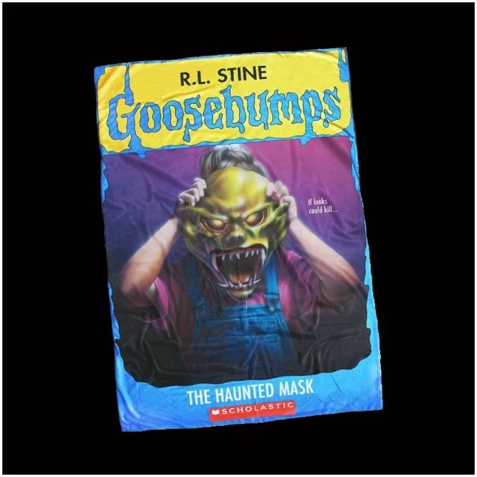 The scariest Goosebumps book ever written is now the cuddliest thing in your home! FACE your childhood fears with this jumbo soft throw designed to be a giant replica of the classic Goosebumps book, The Haunted Mask. Scare up your couch, or your bed — just be warned: once you put the blanket on, it may never come off!