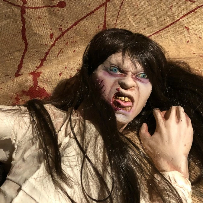 Scary Carrie is a Possessed girl prop. She needs an exorcism! She is made of latex and foam, and is flat backed so you can lay her on the floor or hang her on the wall or ceiling. She would be an excellent addition to your Halloween decorating, Home Haunt, retail store, or themed attraction.