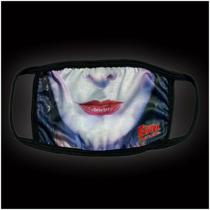 Officially licensed “Elvira Lips” Face Mask face covering mask, these non-medical face coverings are double layered cotton fabric, washable and re-useable. Cotton bands that fit comfortably over the ears.
