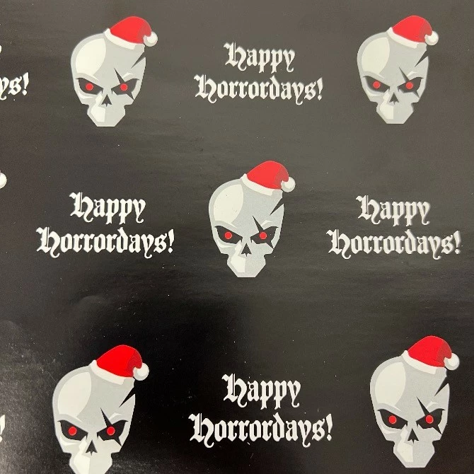 Featuring our ‘Santa Skull’ logo and ‘Happy Horrordays’