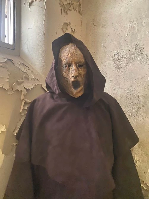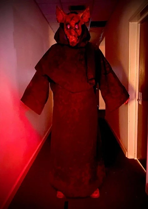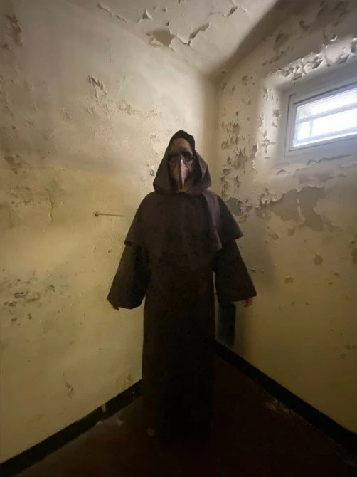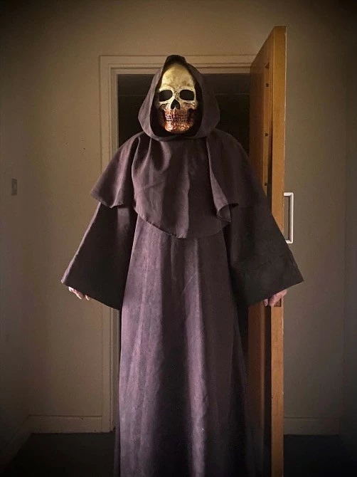 Full length monk’s robe and cowl with wide sleeves and hood. The ultimate in creepy.
