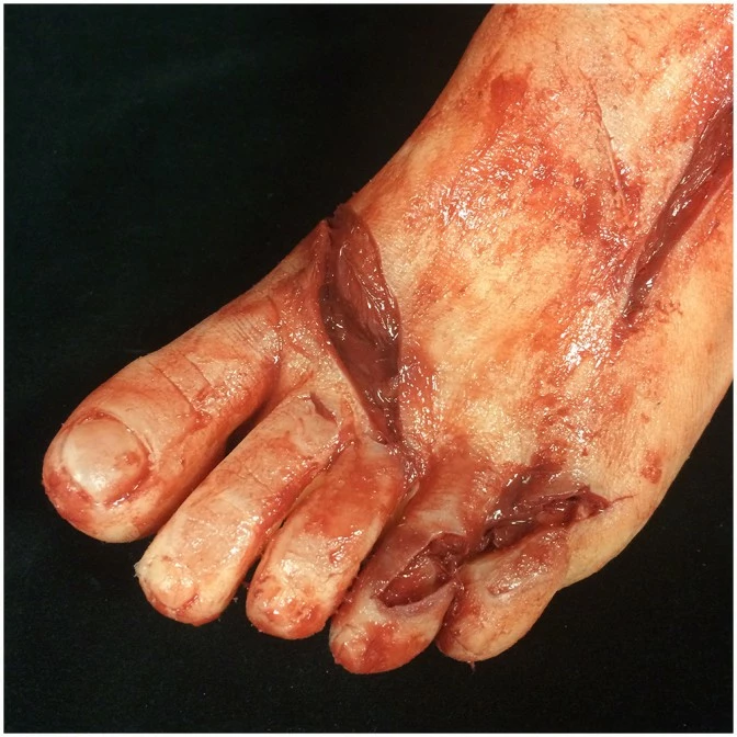 Crafted by a professional US horror artist, this silicone severed foot is a professional quality prop.