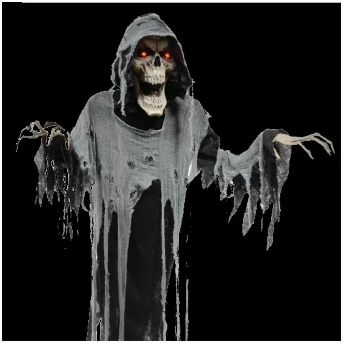 This impressive animated hanging reaper prop is a giant 6ft tall and comes with a cord so you can hang her in your porch or anywhere in you home!