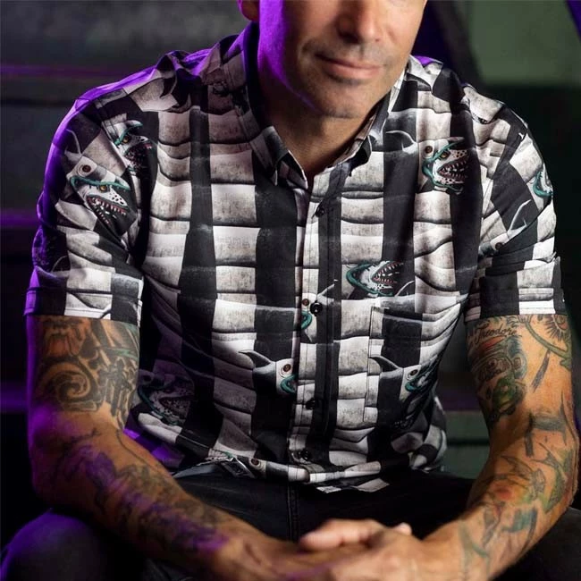 All the way from Saturn, we bring you the Sandworm Stripes KUNUFLEX™ button down! With a classic striped look straight out of Beetlejuice’s closet, you’ll be the best dressed dead or undead person this side of the Neitherworld. The only thing is, those aren’t stripes at all, just a few friendly…ish sandworms out for a quick bite.