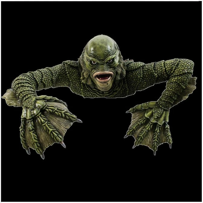 This fantastic life size Creature from the Black Lagoon prop is a must-have for all fans. It is designed to place on the ground to look like the creature is crawling out of the ground. Or place it next to a pond and it will appear as if he’s coming right out of the water! It also looks great when mounted onto a wall.