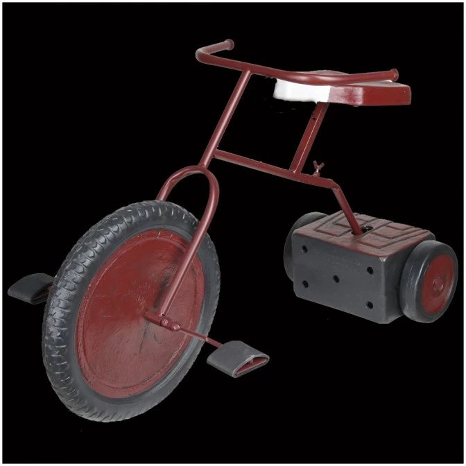 Battery operated tricycle moves forwards & backwards & emits spooky sounds. Great for a spooky doll themed Halloween display. Batteries not included.