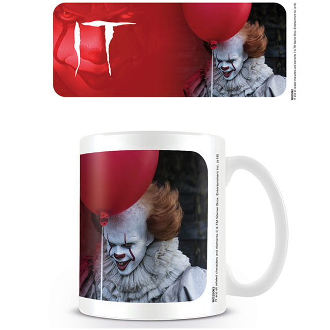 Mug featuring Pennywise the Clown with his iconic red balloon.