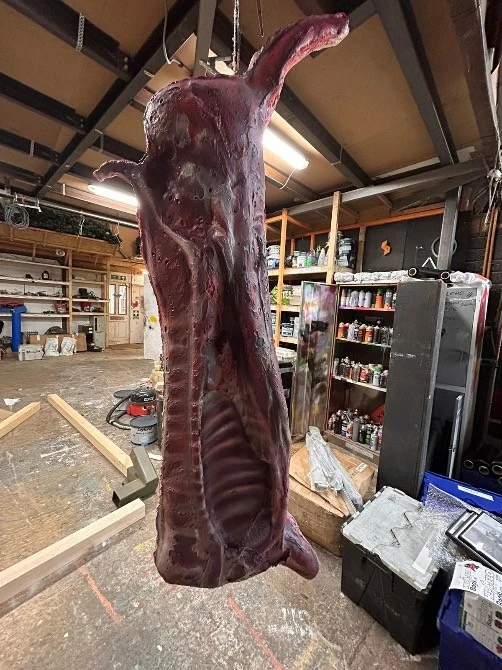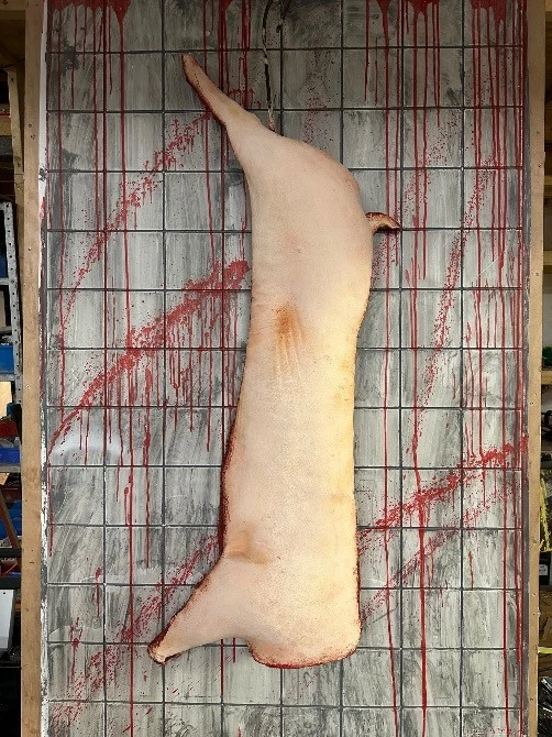 Exceptional quality life size half pig prop. Manufactured from PU foam and painted to a very high standard. As realistic as they come.