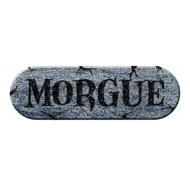 Realistic stone-look plaque with word Morgue seemingly etched into the sign. Foam construction Approximately 12 wide x 4 inches tall and 1 inches thick.