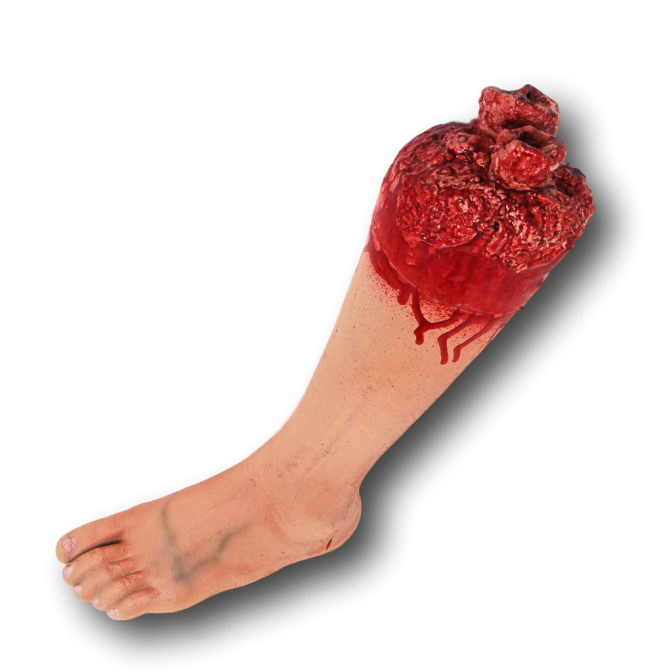 Chopped off severed leg, right or left, if you have a preference please let us know.