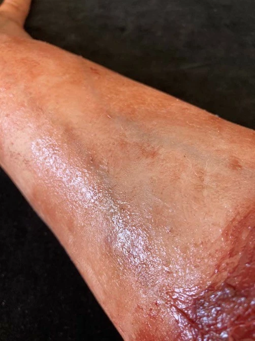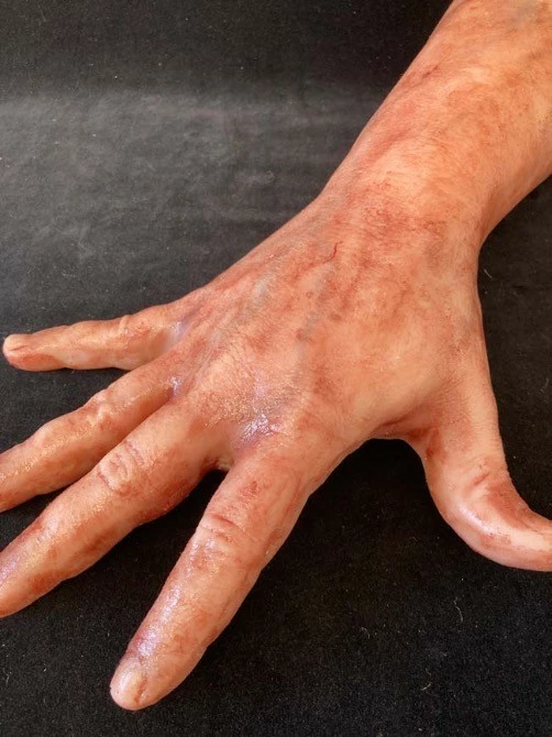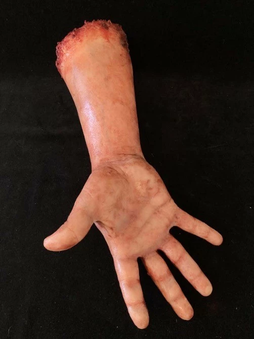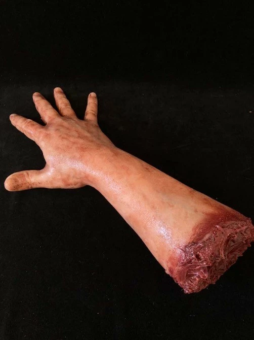 A life cast arm made of silicone and hand-painted for a super realistic look. High quality, artist made prop, perfect for escape rooms, scare attractions and film.