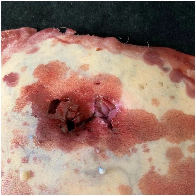 Life cast severed belly button, ideal for Butcher Shop and serial killer themes.