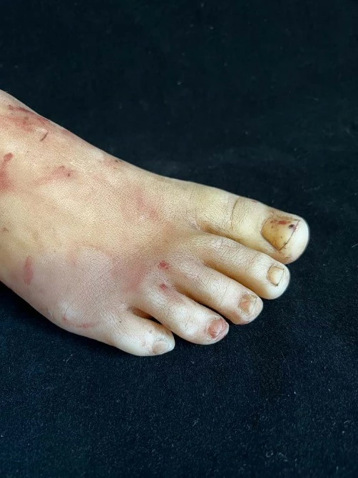 Life cast female foot. Sculpted and hand painted by a US horror artist for the SFX industry.