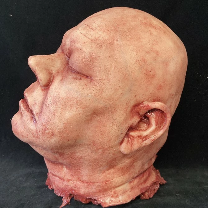 This is a life cast head so is highly realistic. Life casting picks up fantastic skin texture detailing.