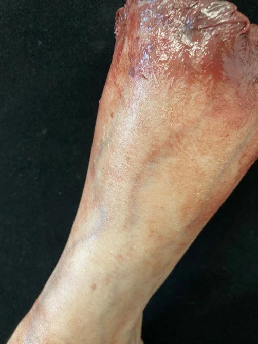 Life cast human severed foot in a ‘dead a while’ finish. Add to your mortuary themed scare maze or graveyard scene.