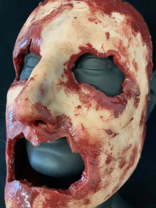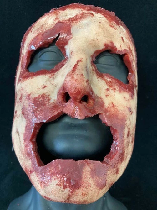 Professional quality face mask created by hand by an independent US artist. As this is a life cast rather than a sculpt, it is unbelievably realistic. It looks as if you are wearing someone else’s skinned face! Just smear some fake blood on your face and you’re done!