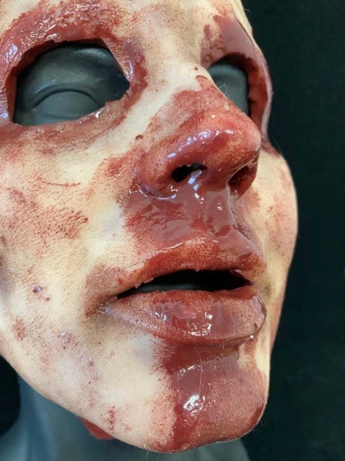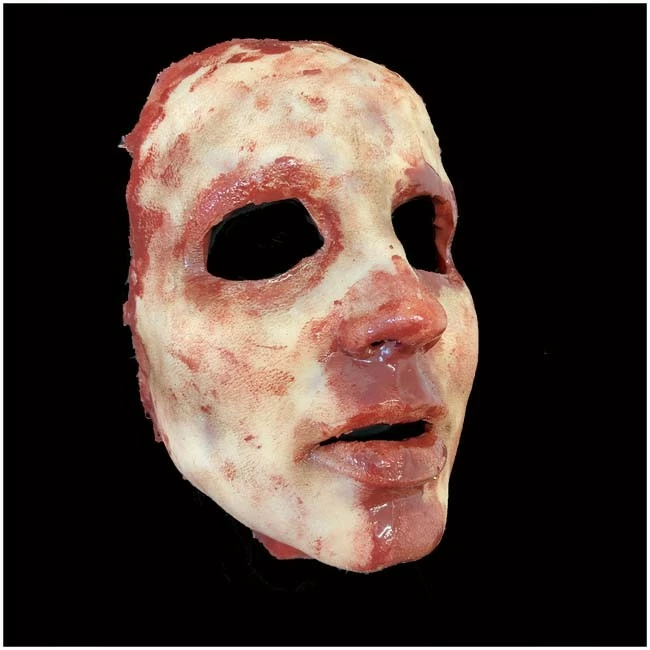 Professional quality face mask created by hand by an independent US artist. As this is a life cast rather than a sculpt, it is unbelievably realistic. It looks as if you are wearing someone else’s skinned face! Just smear some fake blood on your face and you’re done!