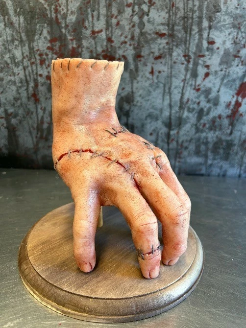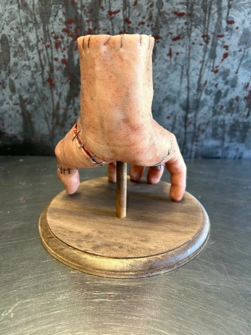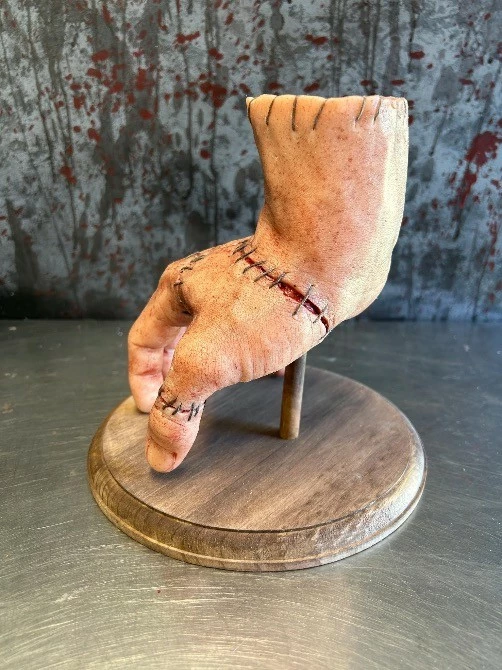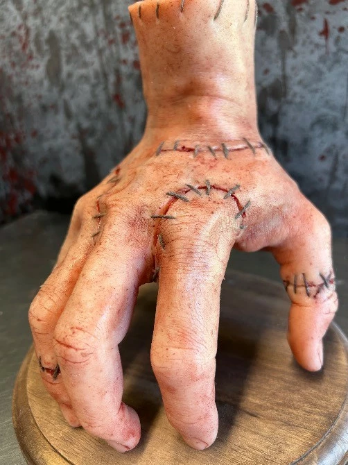 Severed silicone severed hand with stitch detailing.