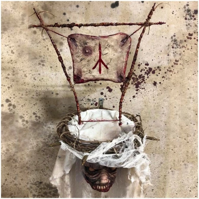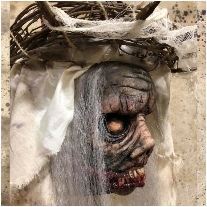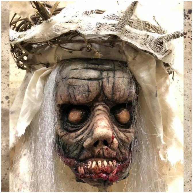 His creations are now purchased by celebrities, collectors, and business owners all over the world. He has also created many different make-up and F/X jobs for film and stage.   This grotesquely scary mask is uniquely terrifying.