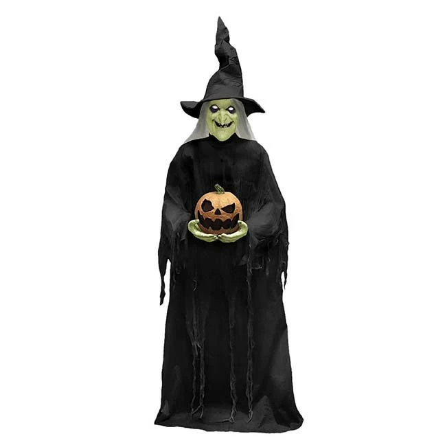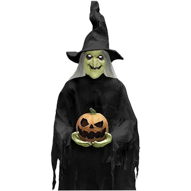 Double, Double Toil And Trouble! Ghostly Witch Cackles And Taunts You With Her Glowing Eyes And Flickering Pumpkin