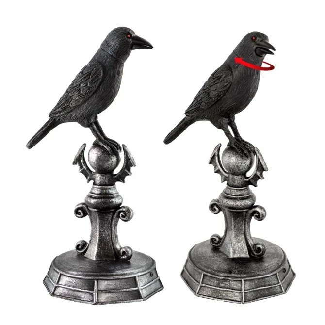 Nothing Screams Halloween Like a Spooky Crow! Place This Animated Crow on Any Tabletop to Enhance Your Halloween Decor. Crow’s Head Moves Back and Forth as it Makes Realistic Sounds.