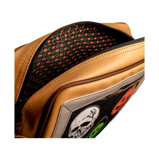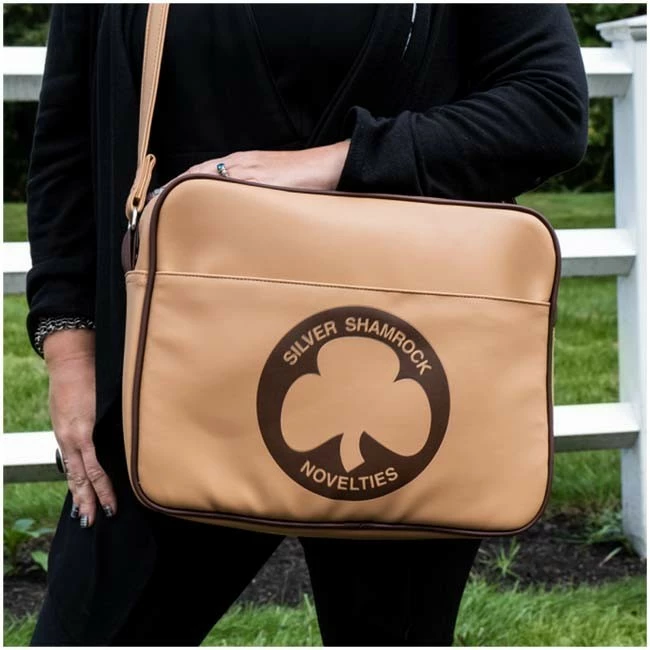 Inspired by the infamous Silver Shamrock Big Giveaway Commerical this incredible purse is made using the highest quality Vegan Leather for excellent durability. This bag features embossed details, powerchip zipper pull, printed lining with a large center pocket, large exterior pocket, and an adjustable strap. This bag can be worn as a purse or cross-body to make it comfortable for everyone!